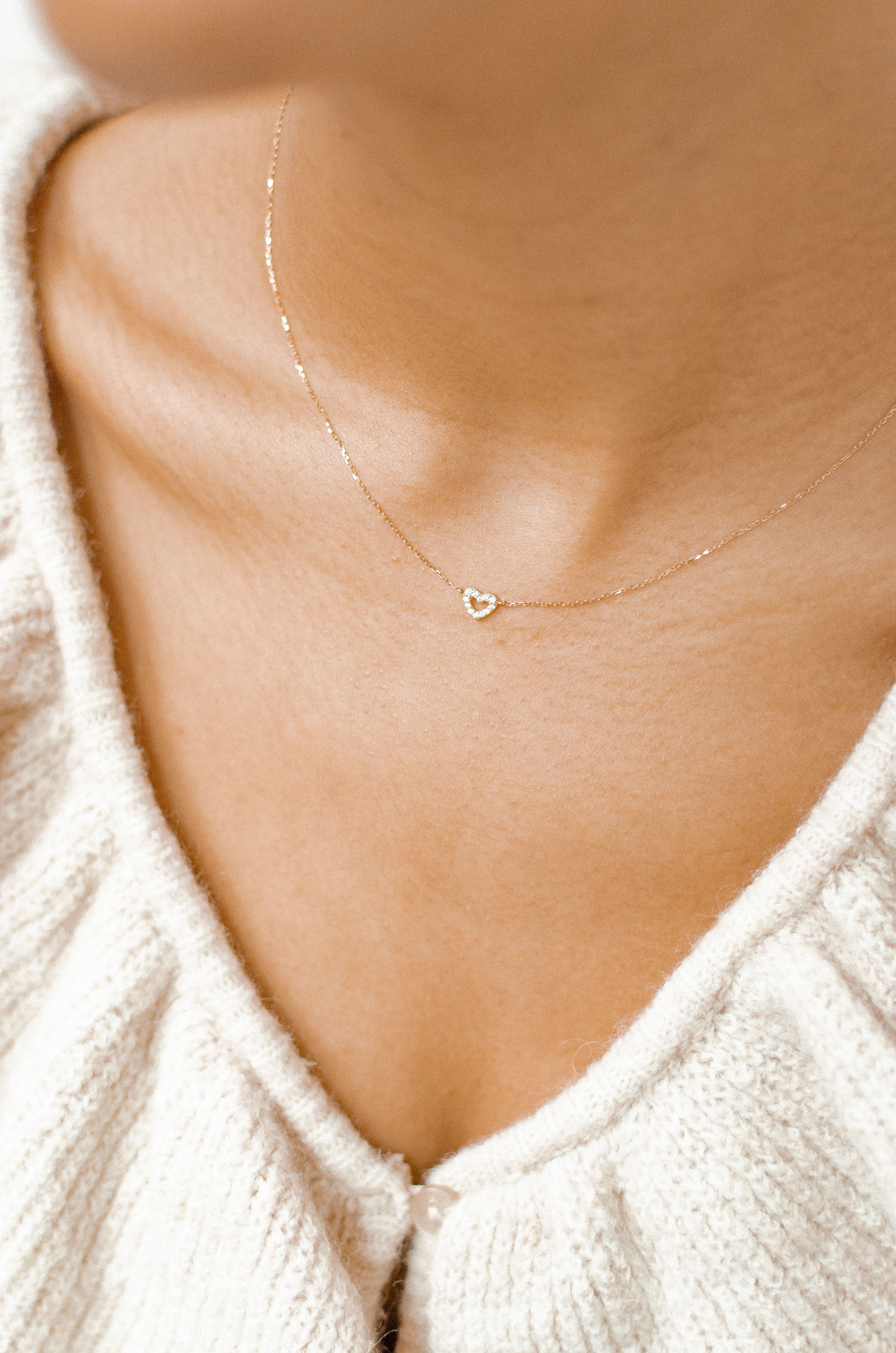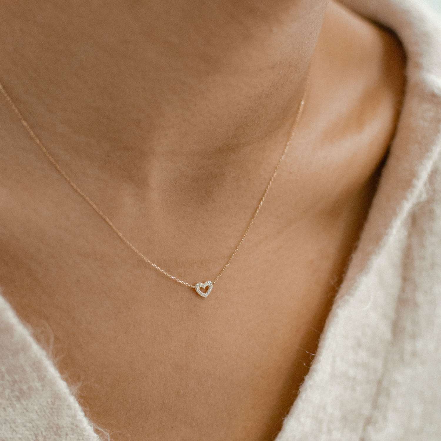With its 585 solid gold heart-shaped pendant covered in 12 tiny zirconia stones, this necklace is the perfect symbol of the love and affection in your life, and a small but powerful reminder that you are cared for. With its fully adjustable chain and easy-to-use round spring clasp, also made from 14 k solid gold, you can easily find your desired fit and wear the pendant close to your own heart. A timeless, poetic piece made for the modern romantic. Also check out Amore Stud Earrings 14K Gold.