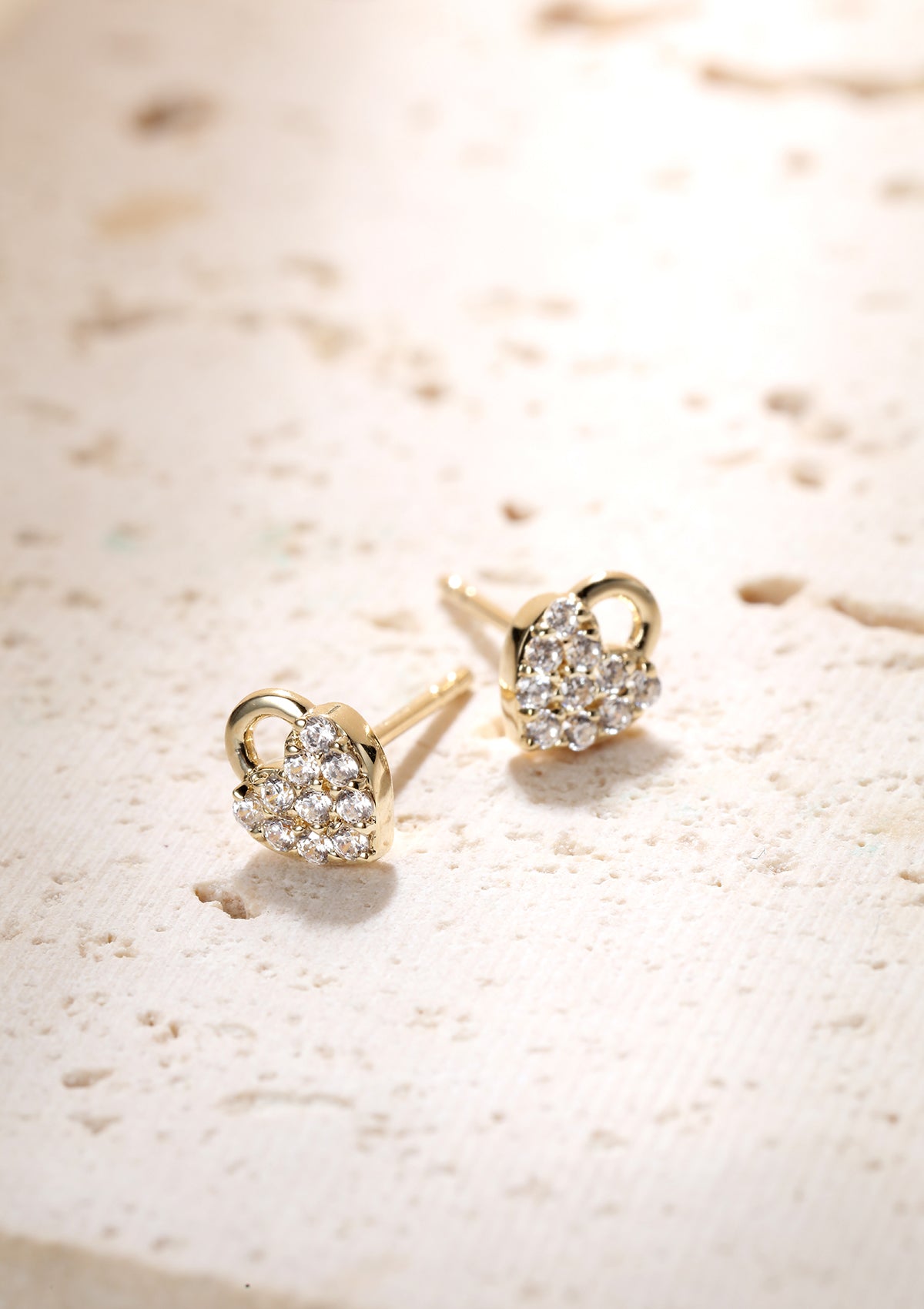 With their matching zirconia-encrusted heart-shaped padlocks, this pair of stud earrings are a reminder that self-love is the strongest there is. Designed to represent the love and acceptance of yourself, these 9 karat 375 solid gold earrings are a quick note to say you are perfect just the way you are. Also check out Amore Stud Earrings 14K Gold.