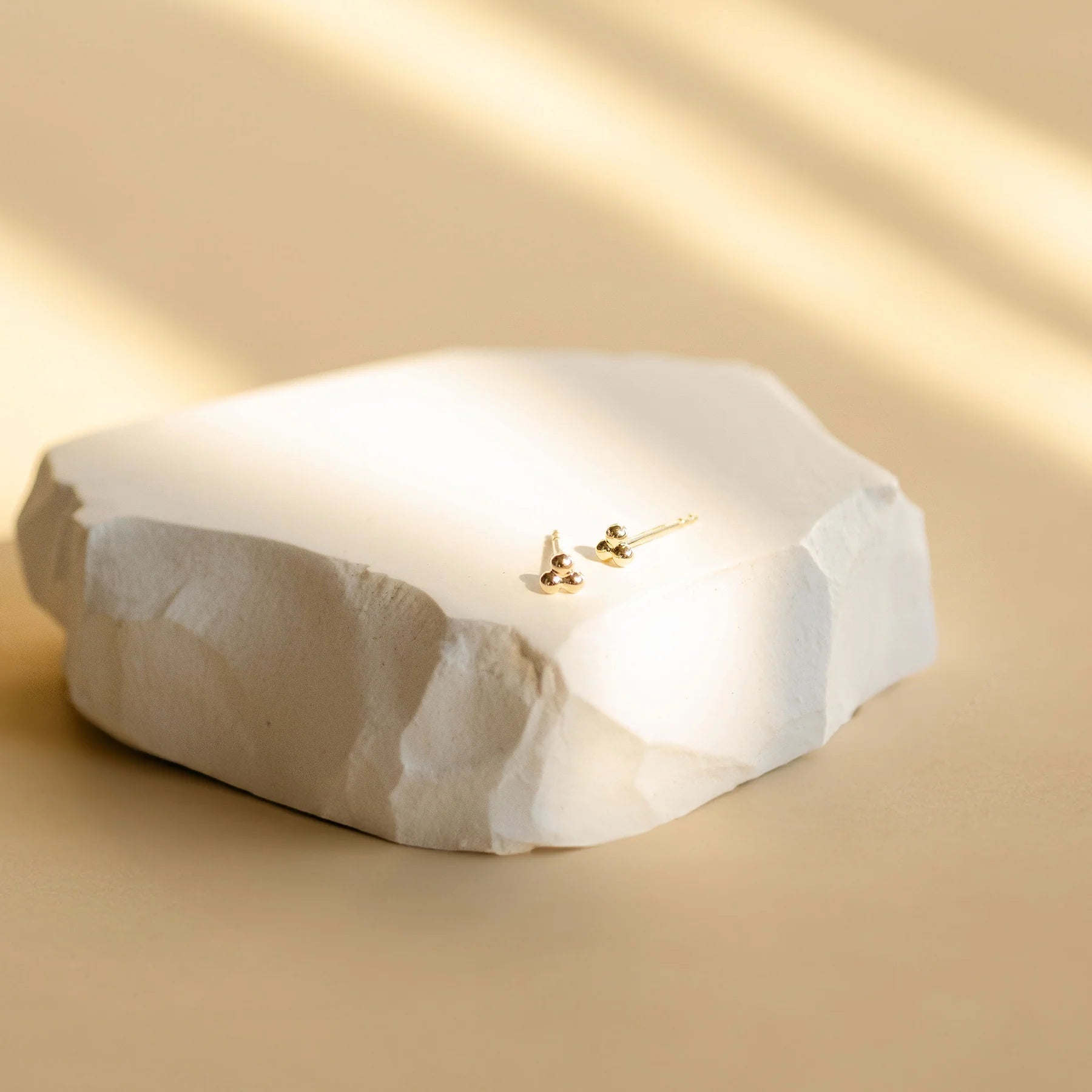 These 14K gold stud earrings feature a unique triad design of 3 balls, making them a stylish and versatile choice. Perfect for daily wear or special occasions, they can be purchased as a single earring or a pair. Elevate any outfit with these elegant and high-quality earrings. Also check out, Trinity Stud Earrings 14K Gold