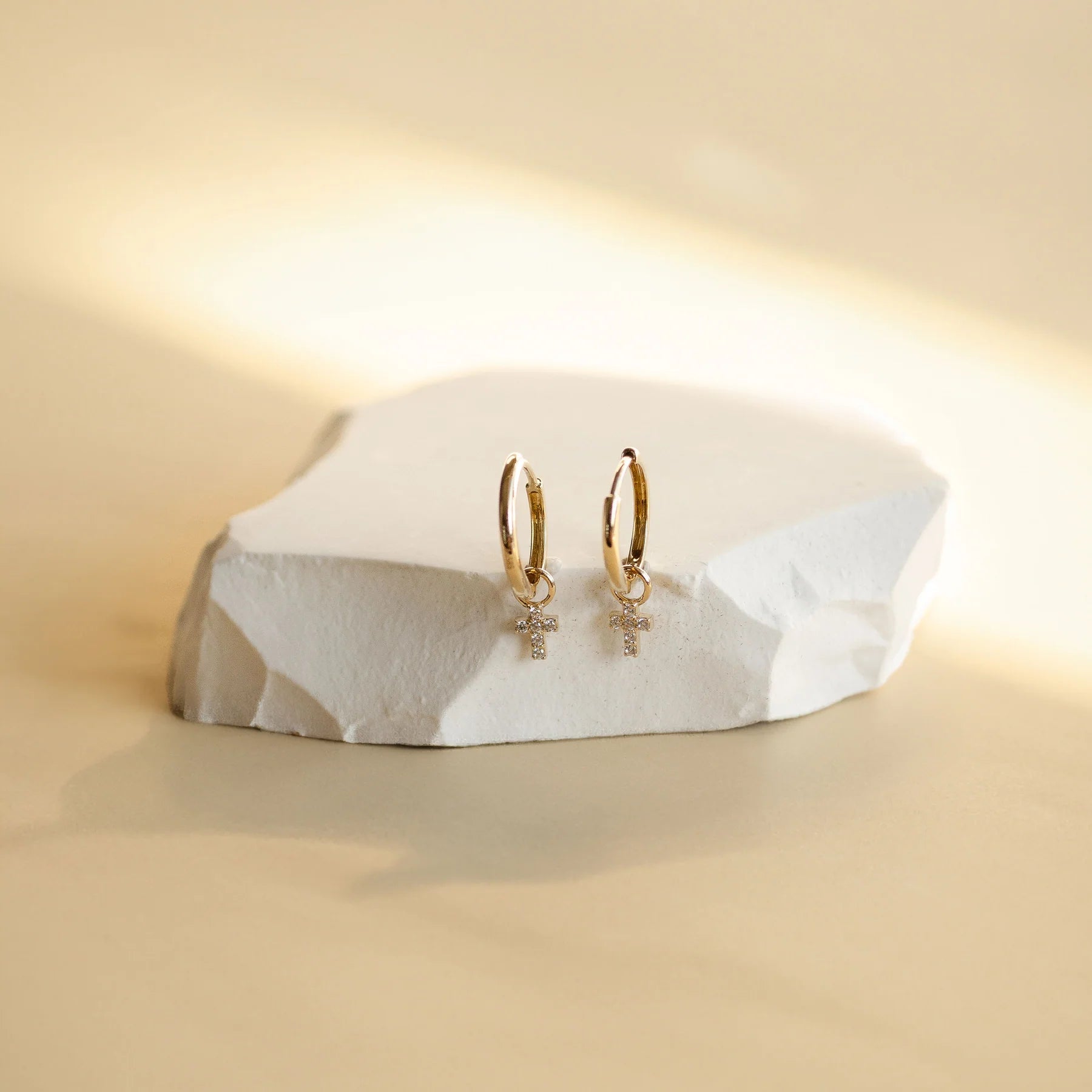 Expertly crafted from 14K gold, these Hope Hoop Earrings offer a versatile and elegant addition to your jewelry collection. Featuring a detachable cross charm, these hoop earrings can be dressed up or down for any occasion. Available in single or pair options, they offer a touch of sophistication to any outfit. Also check out, Hope Huggie Hoop Earrings 14K Gold