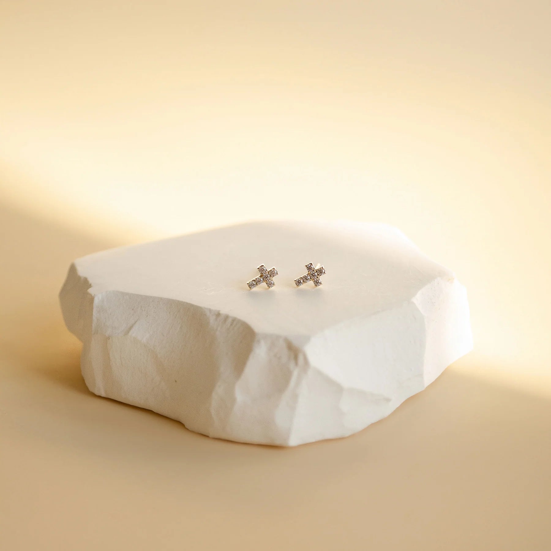 Experience timeless elegance and compassion with our Hope Stud Earrings in 14K Gold. The delicate cross design adorned with sparkling zirconia stones exudes grace and faith. Handcrafted from quality 14K gold, these stud earrings are available as a single piece or a pair for versatile styling. Upgrade your jewelry collection with this stunning piece. Also check out, Believe Stud Earrings 14K Gold