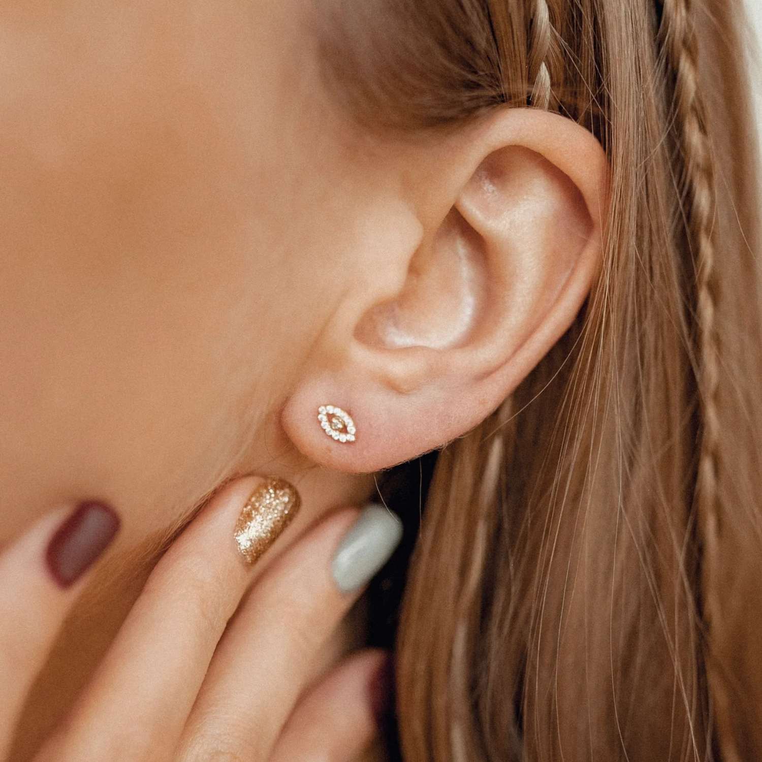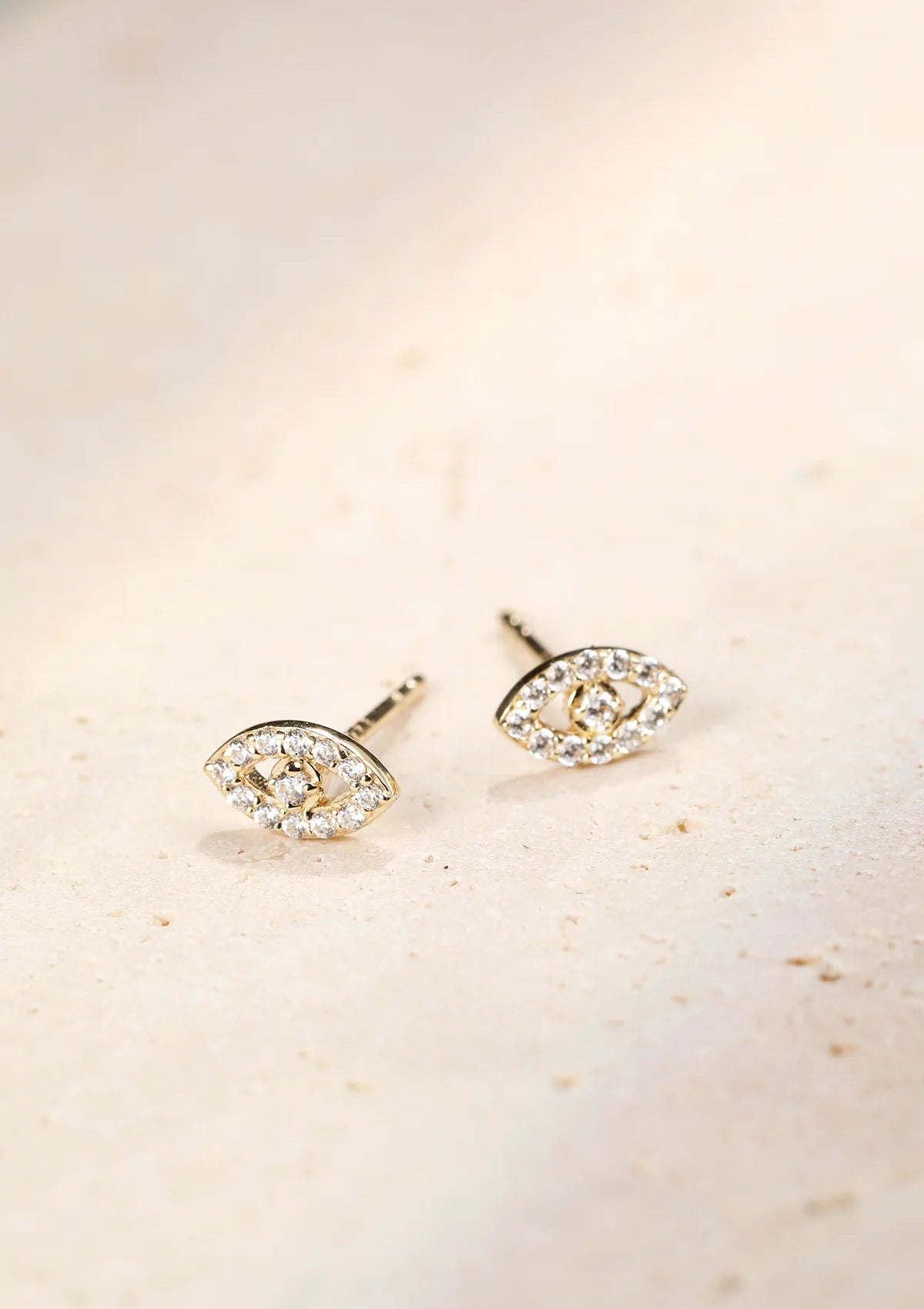 The Evil Eye is a well-known symbol of protection, believed to ward off bad luck or misfortune. Ideal to wear whenever you need extra encouragement or a small boost, these 9 karat 375 solid gold studs embellished with tiny zirconia will help you face your challenges front on, and to stand strong while doing so.