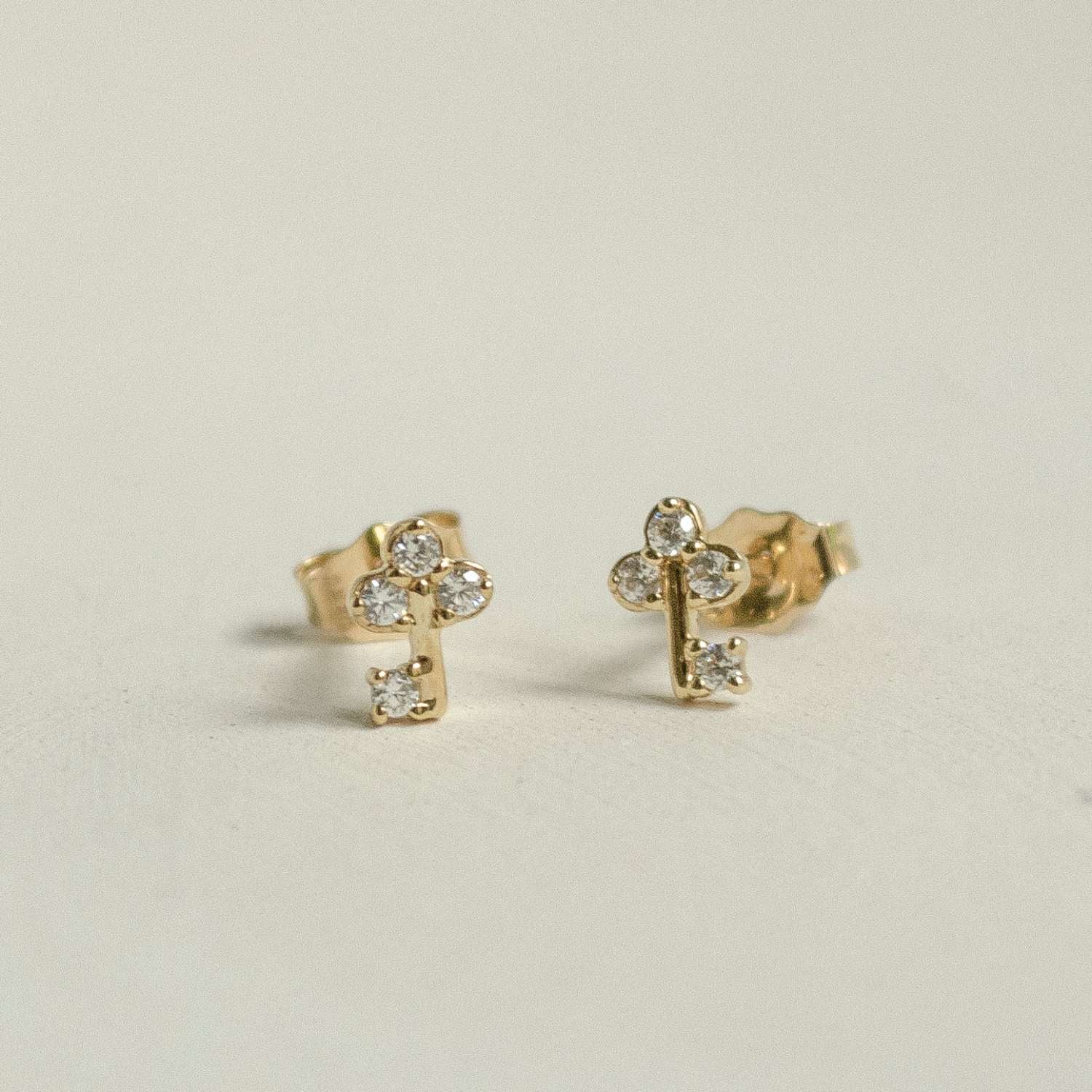 Bearing a small key motif decorated with four tiny cubic zirconia, our 9k 375 solid gold Success Studs are designed to represent knowledge, wisdom, achievement, and opening locked doors. A great gift idea to mark special milestones, to celebrate graduation or a major promotion, or simply to remind yourself of your own bright future that lies ahead.